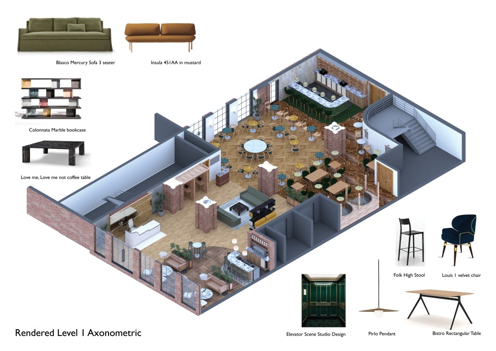 The design proposal “to design the interiors of a boutique hotel in Dublin’s city centre” was initially a massive struggle to get stuck in to. It felt inappropriate to design yet another hotel in a city being leeched of its cultural institutions and venues, in a year where hotel travel has been reserved for the unashamed Covid denying wealthy who are willing to put the lives of their minimum wage servers on the line. Not to mention the ever-growing number of homeless families in emergency accommodation and rough sleepers that cannot afford a roof over their heads due to crippling rent prices brought on by a huge supply and demand problem of affordable housing to buy for young professionals, such as myself.