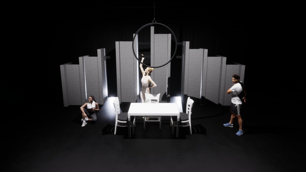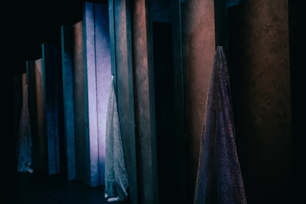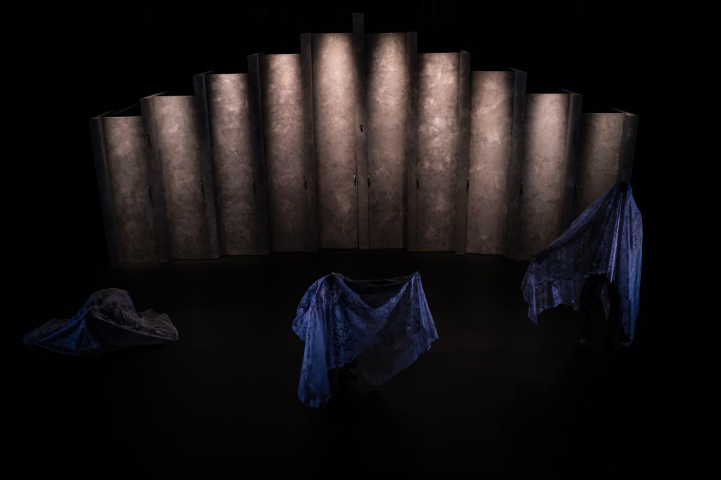 The Ireland We Dreamed Of is a new performance by visual artist Sinead McCann in collaboration with sociologist Dr Louise Brangan based on her research into The Magdalene Laundries. Using dance and aerial performance the silence, secrecy and shame is expressed in a series of dreamscapes which explore not only the laundries themselves but the society that allowed them to exist. The set was inspired by the concrete megachurches of the 1970’s as well as the materials of these institutions and Ireland’s bungalow bliss. This resulted in a series of doors allowing secrets to be hidden or revealed and the imposing nature of the church’s influence over daily life to be ever imposing throughout the piece.